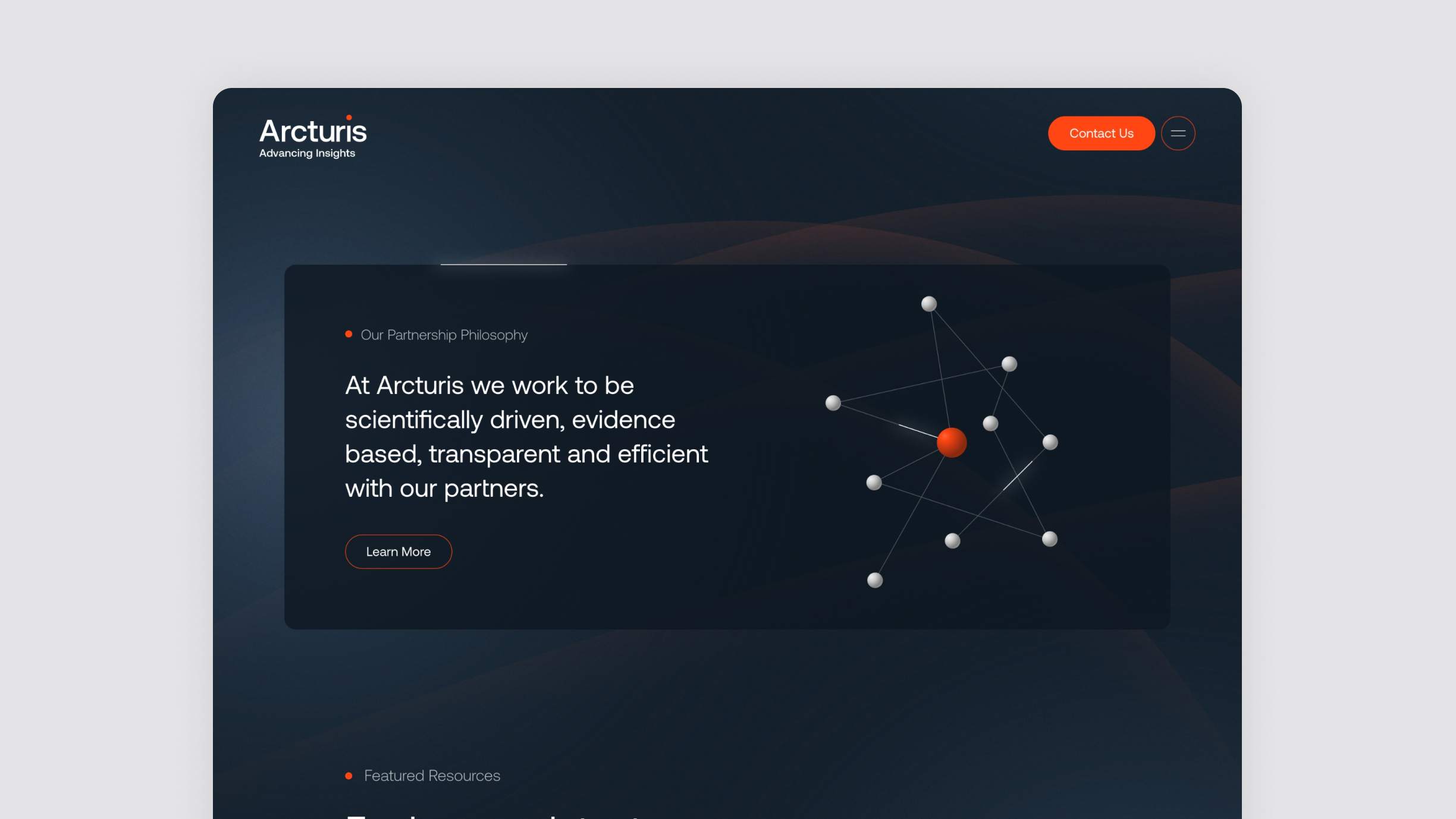 Once the brand development was finalised, we began on the website. The goal of the website was to clearly outline Arcturis’s capabilities and values whilst standing out visually in their industry.