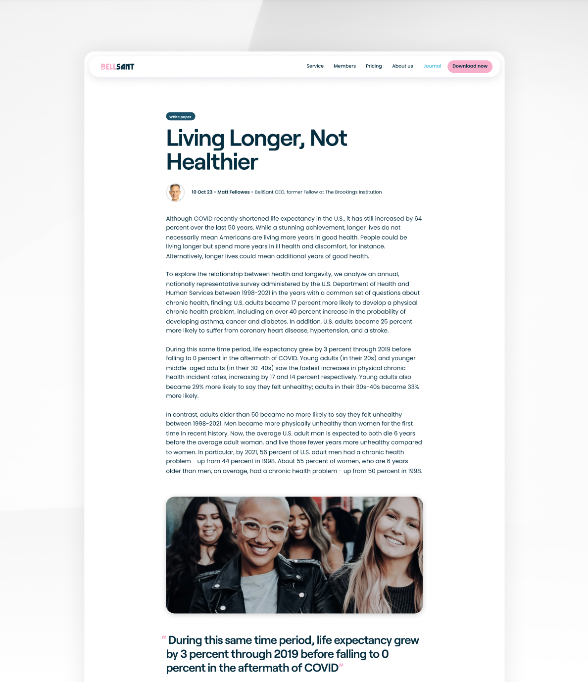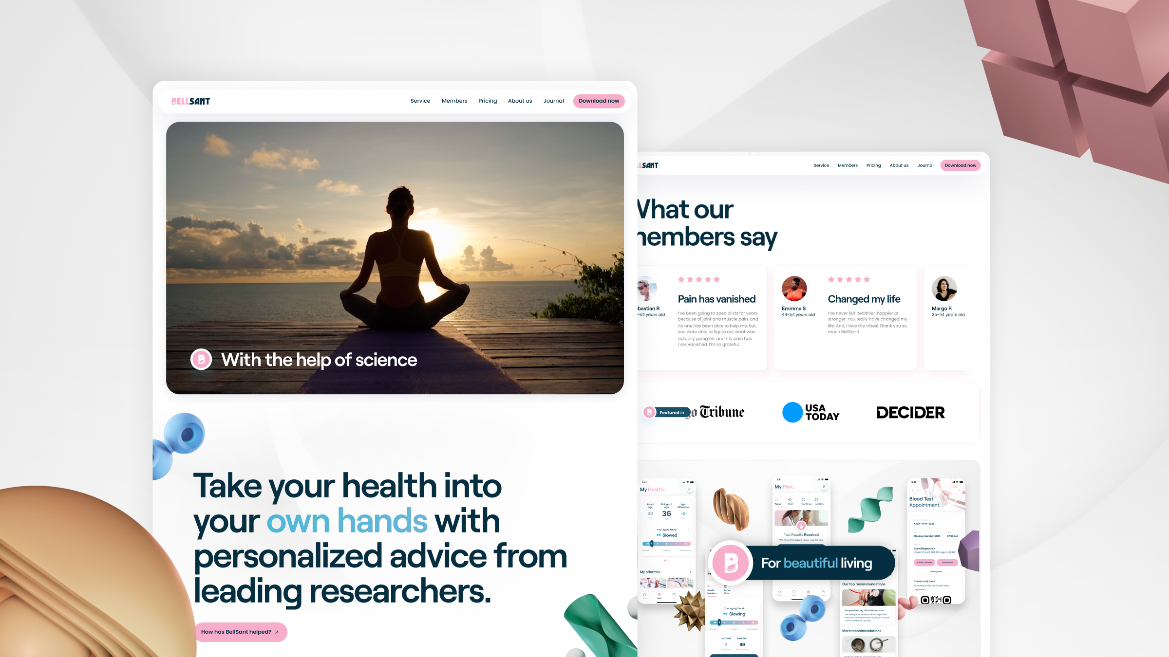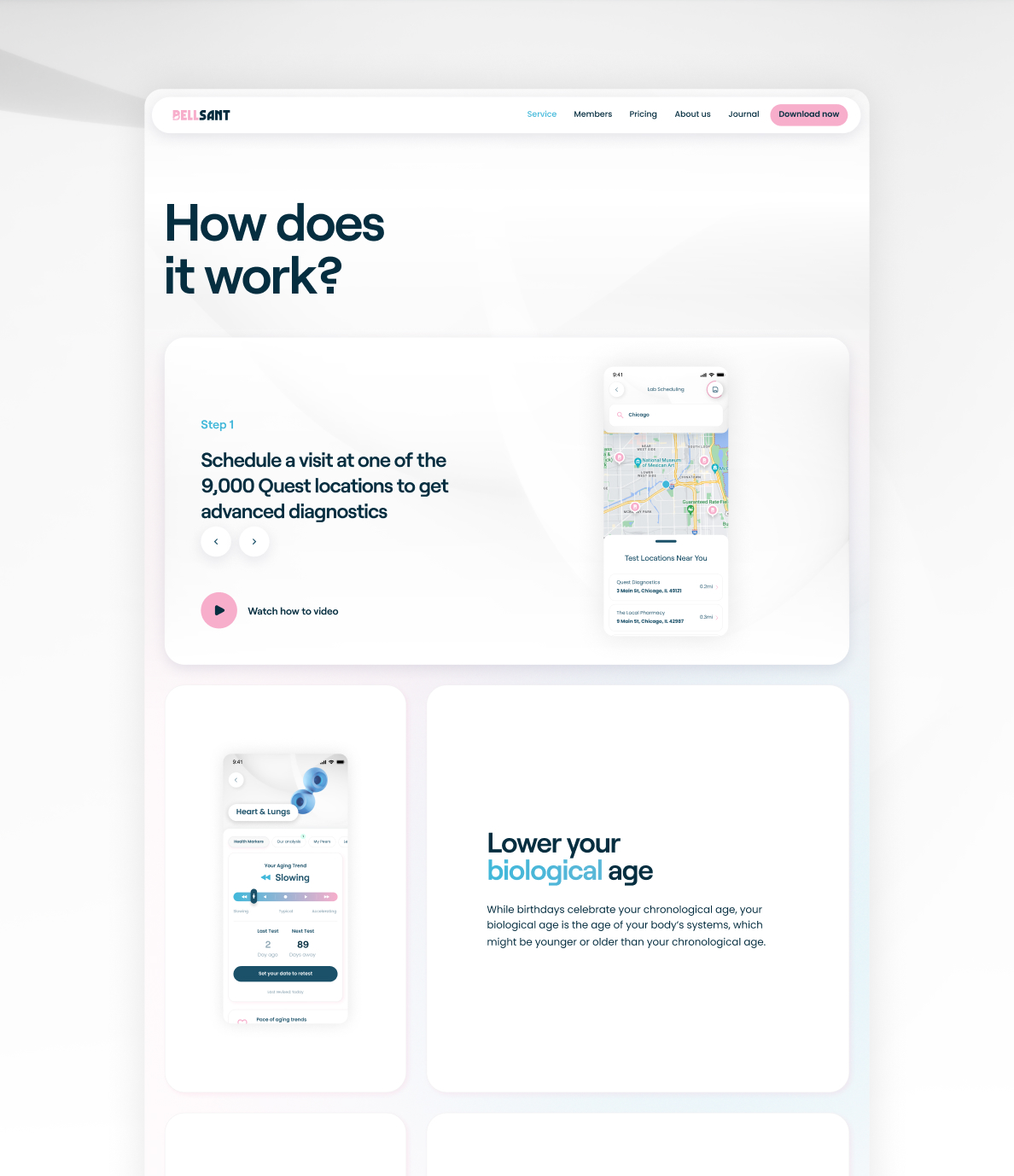 Bellsant help build the strongest version of you by slowing the pace of aging across 11 key health systems. They approached KOTA to help them build their brand from scratch and apply it across every touch point, from their website to their app.