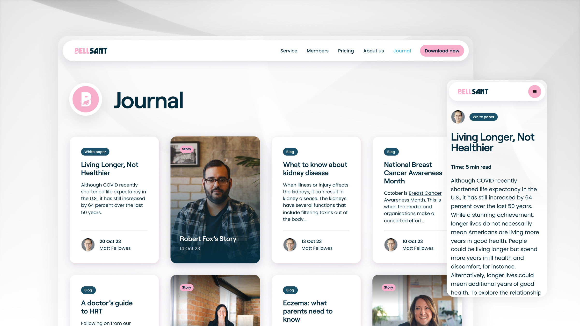 We designed and built a new website allowing Bellsant to bring their brand story to life. We utilised lots of beautiful animated elements, autoplaying videos and app animations to showcase key app features.