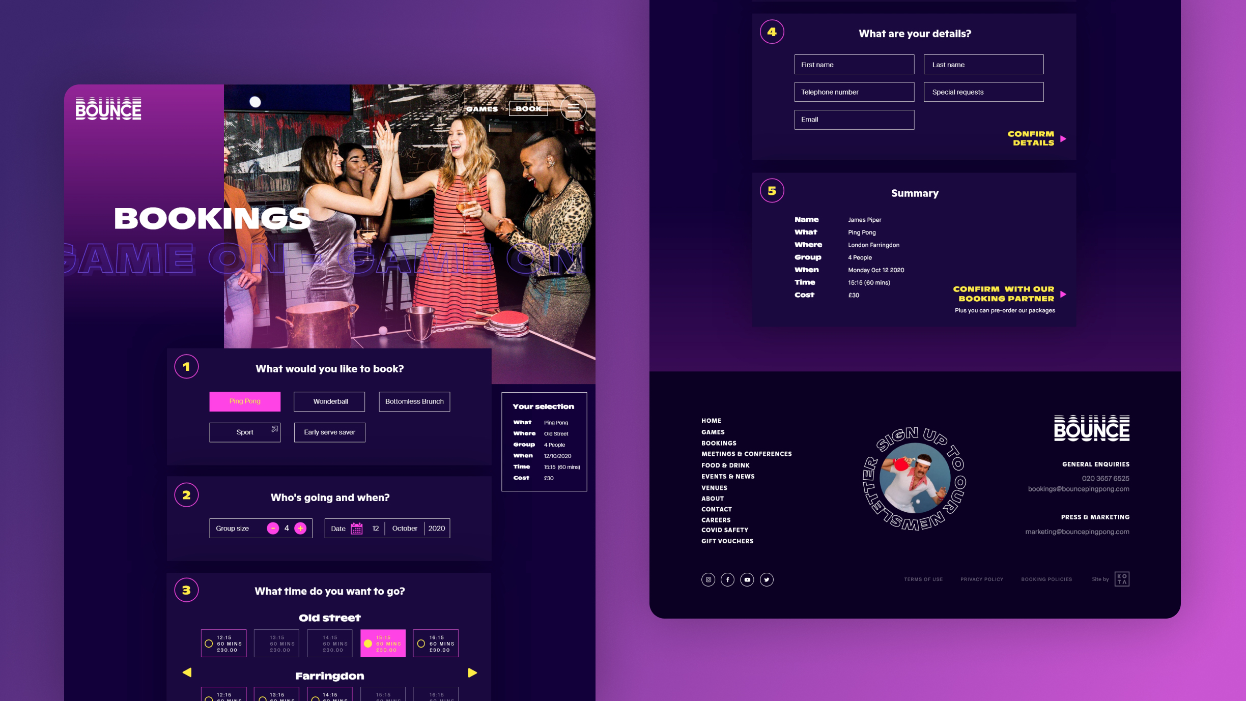 The focus was split into two key areas: streamlining a visitor’s user journey and booking process, and bringing the in-venue Bounce experience to life online.