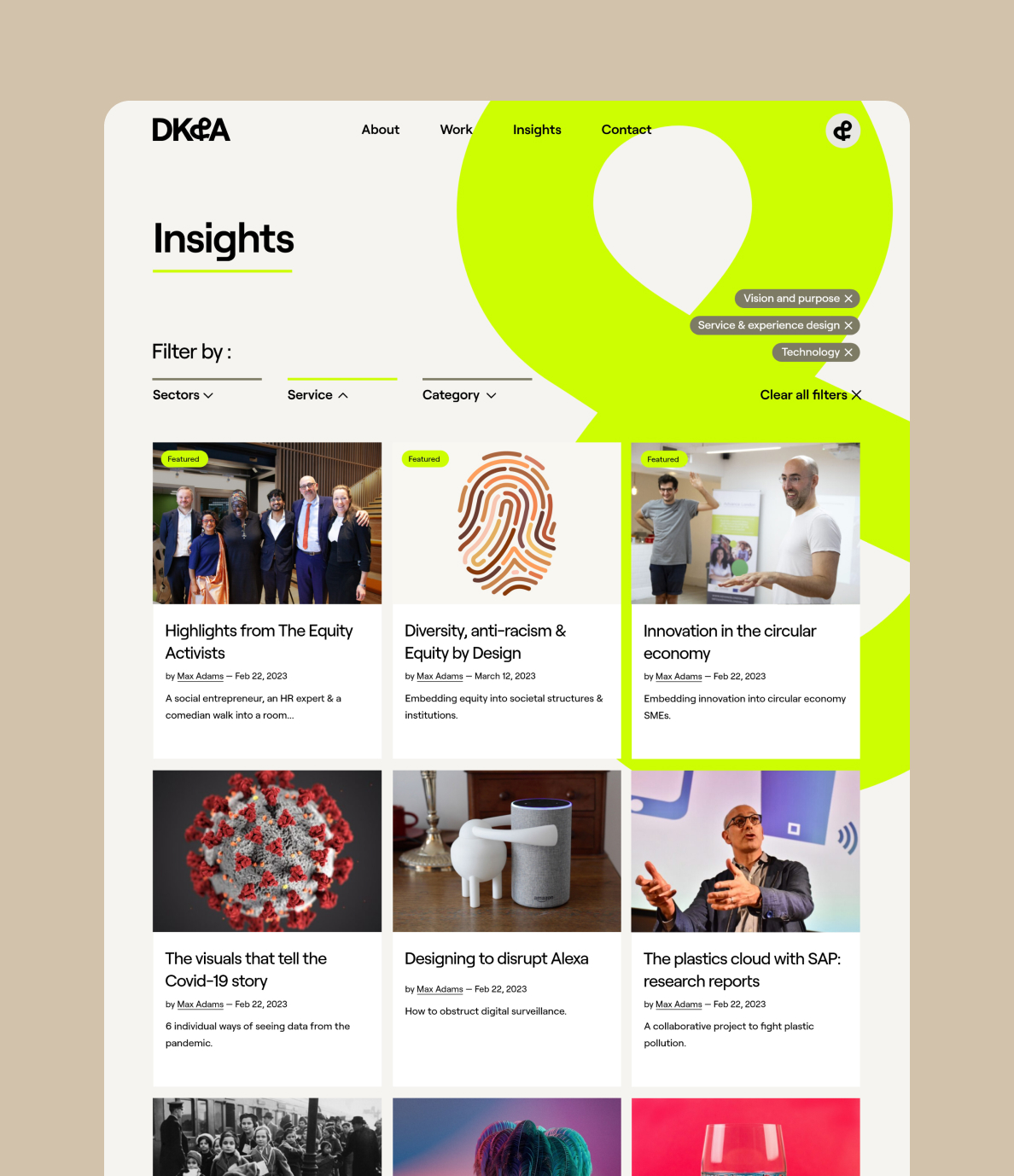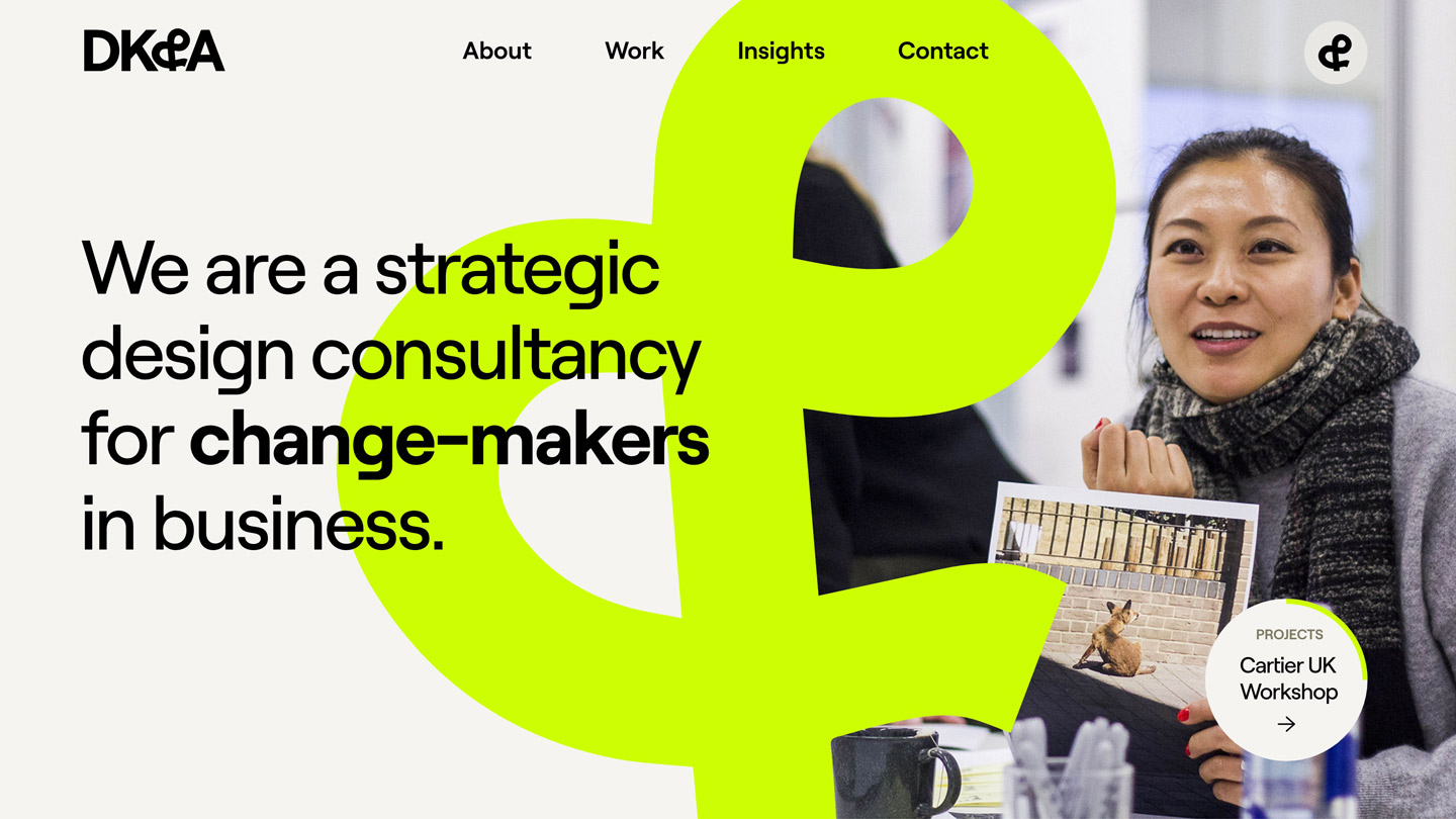 As DK&A are a design company, we wanted to make sure the new websites to felt creative and exciting for users to navigate. Part of their new branding are the acid ampersand and molecules, throughout the website we animated these elements bringing them to life as a point of difference in the industry.