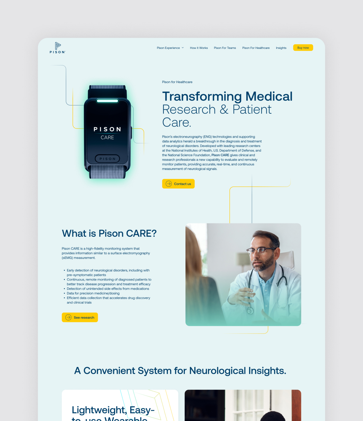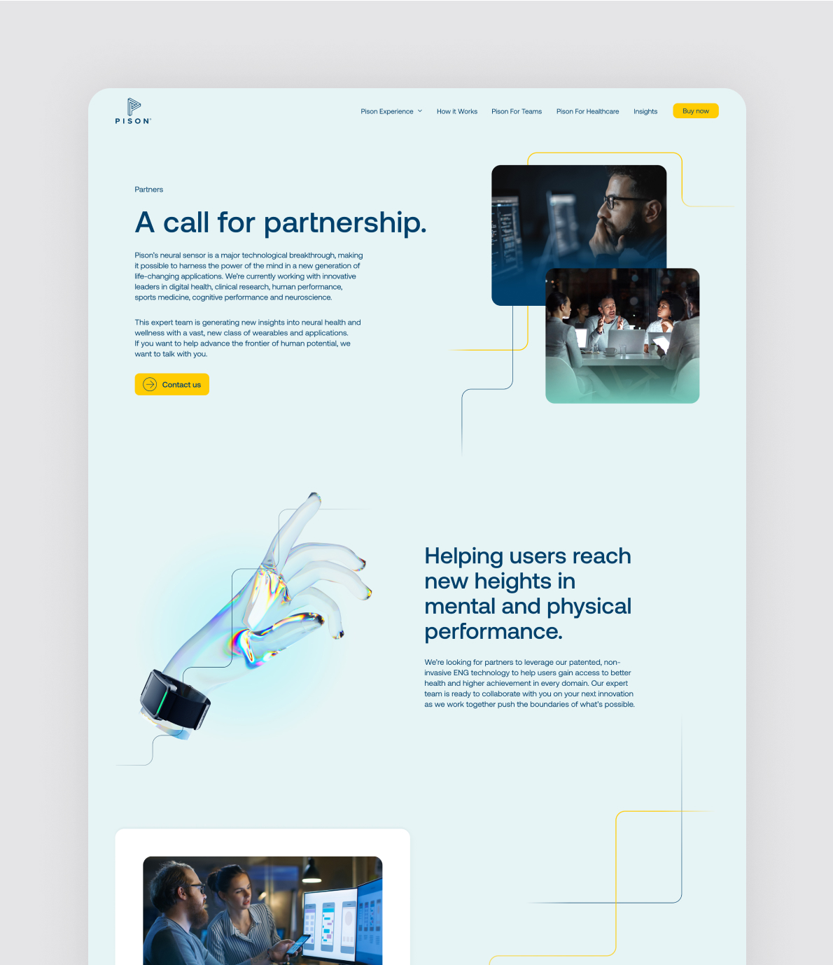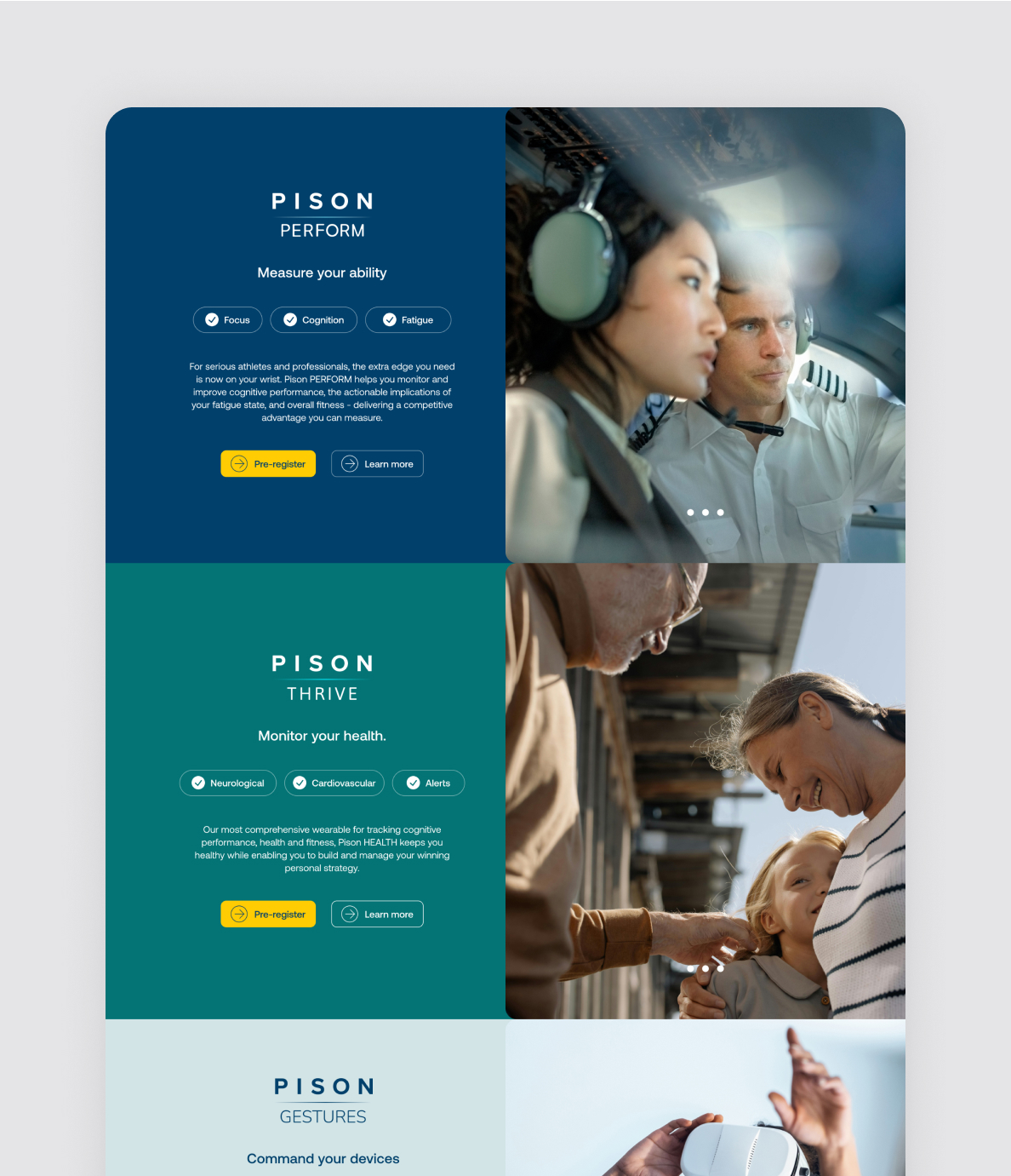 Pison team is creating revolutionary sensor technology and AI-infused software that will guide users to better health and higher achievement in every domain. They’re engineers, entrepreneurs, medical professionals, and scientists working together to solve the most compelling, real-world problems by harnessing the power of the mind in real-time.
