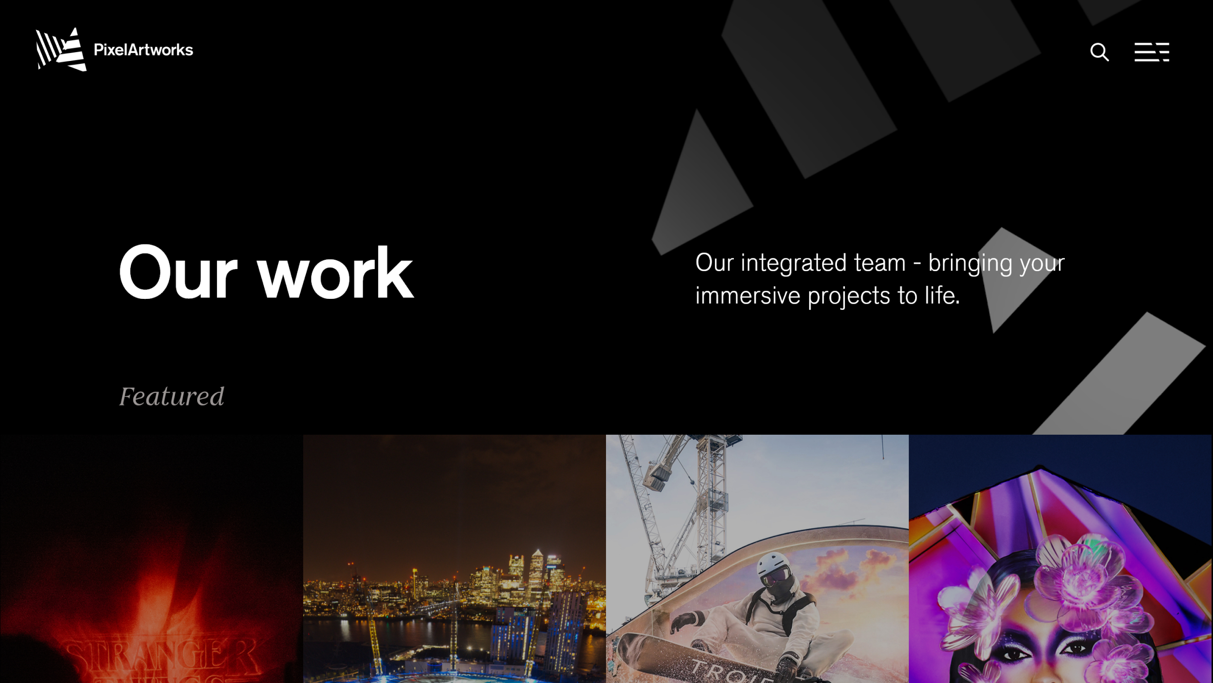 Our goal was to design a new website that not only positions PixelArtworks as a leader in immersive experiences, but also functions as a sales generation tool. We achieved this through our extensive research and design discovery phase, finding the sweet spot between modern user interface trends and a focused user experience.