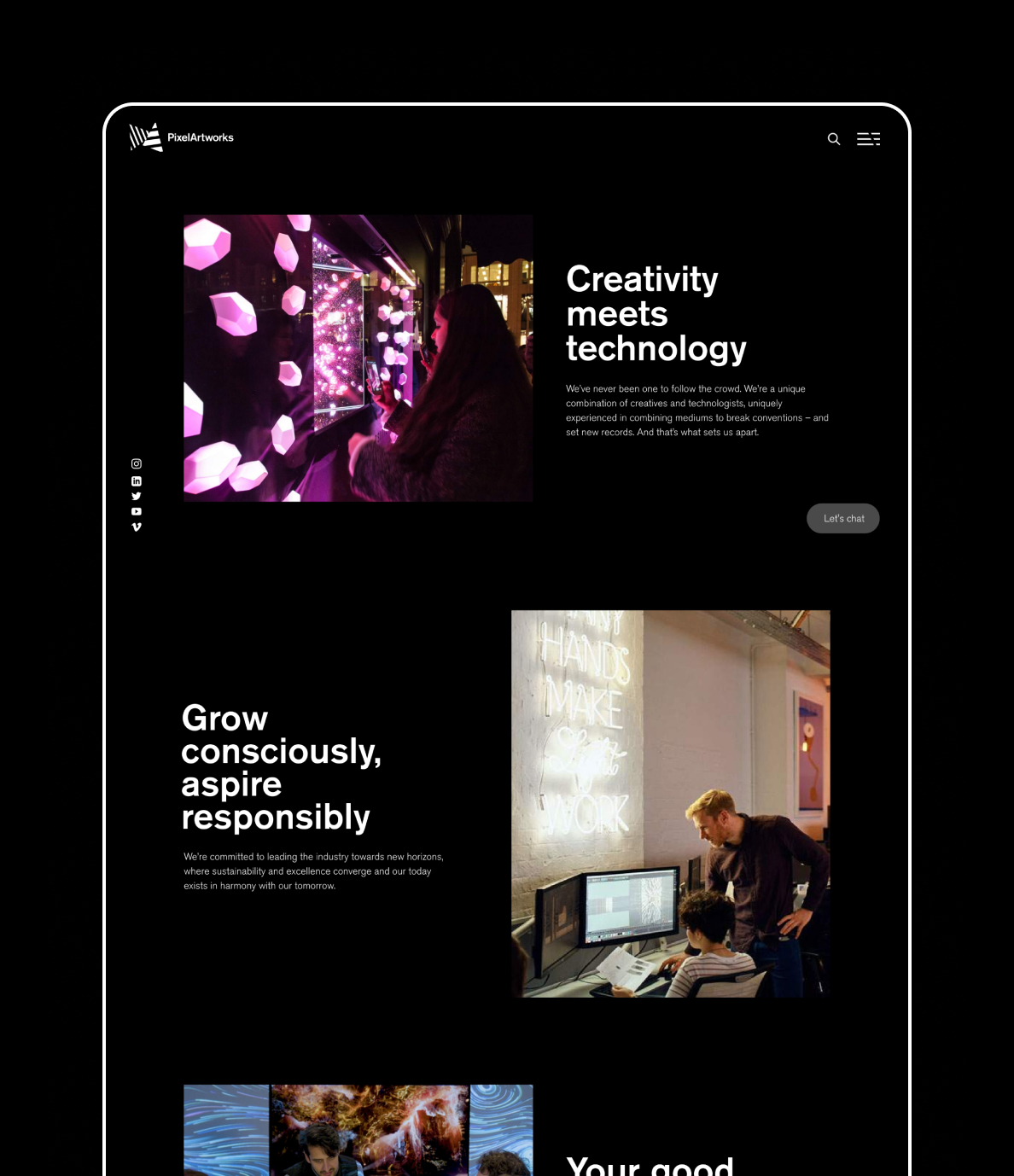 PixelArtworks is a global pioneer in pixel and light technology. They create awe-inspiring, immersive experiences for clients looking to build deep, long-lasting connections with people.