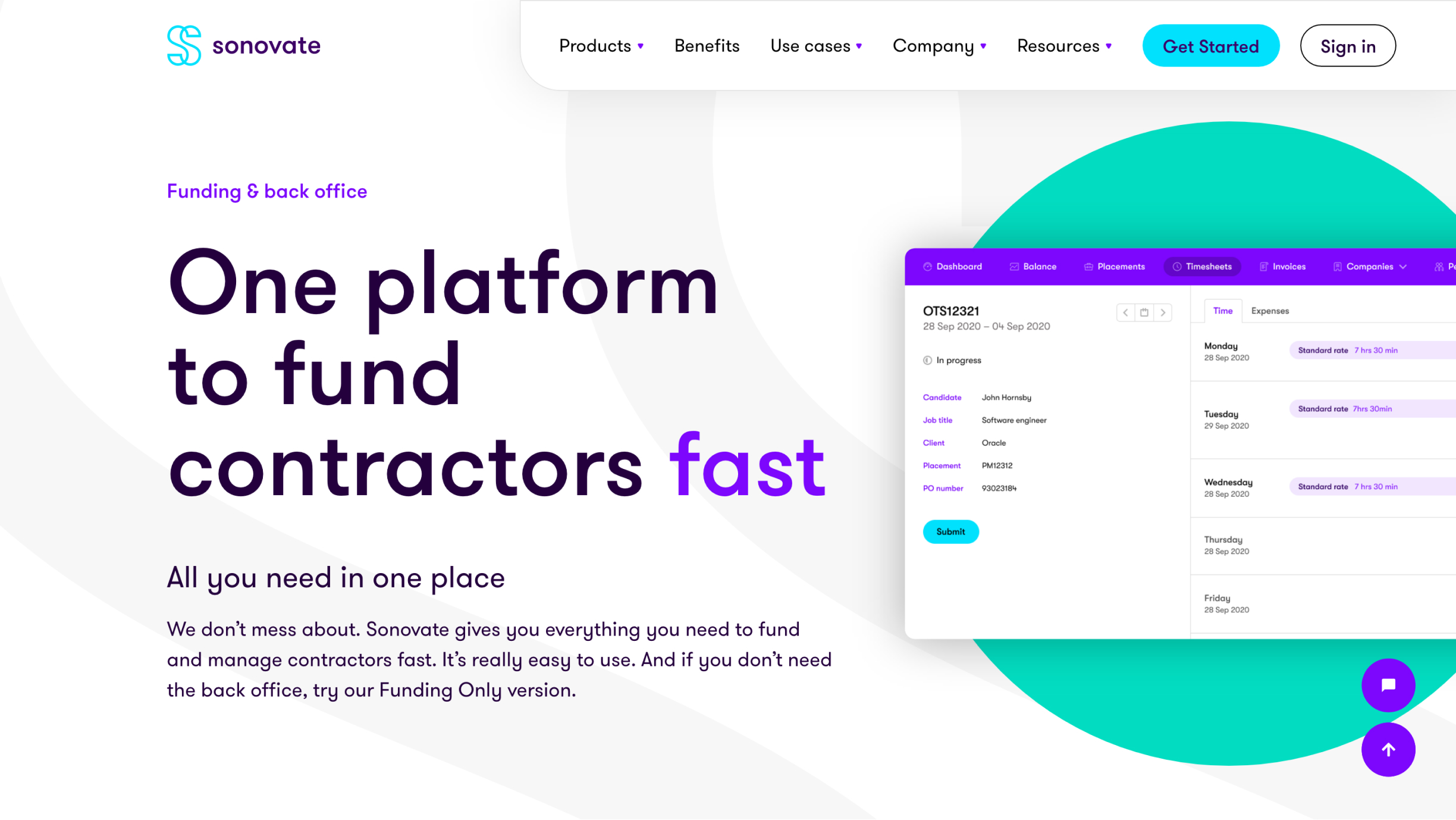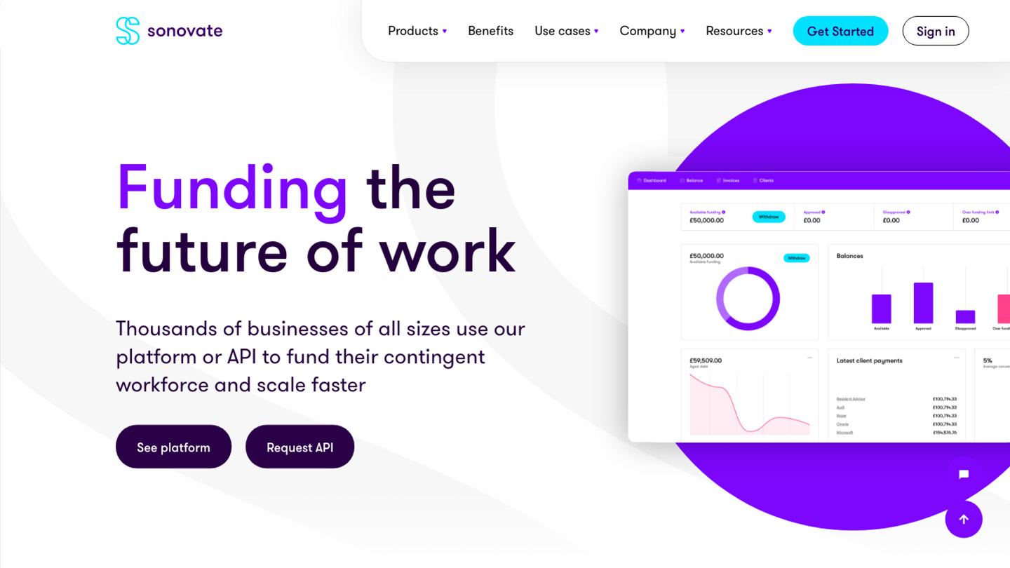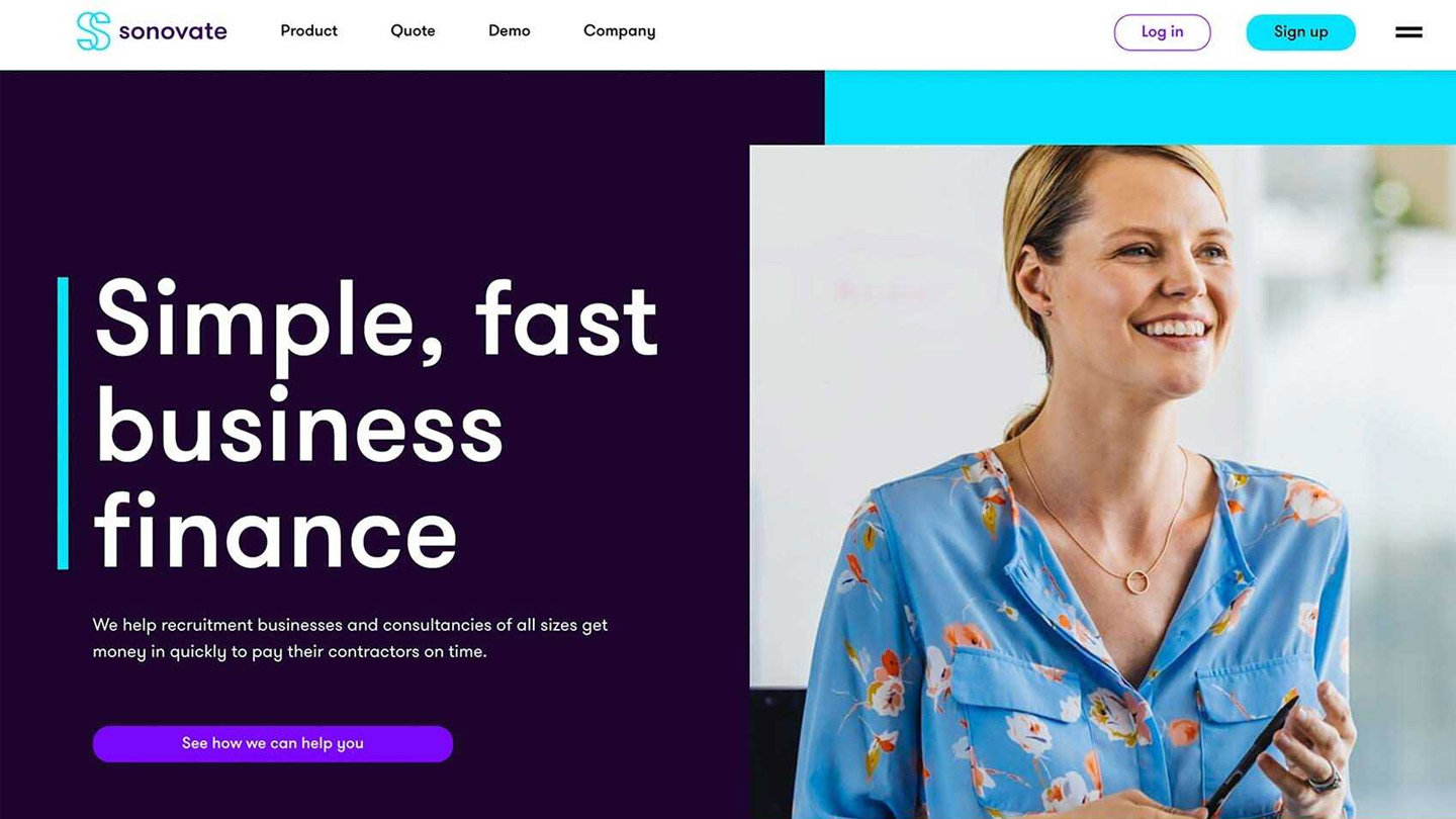 Sonovate help recruitment businesses and consultancies of all sizes get money in quickly to pay their contractors on time. Their combination of simple, fast funding and technology means their clients get time back to grow their business.