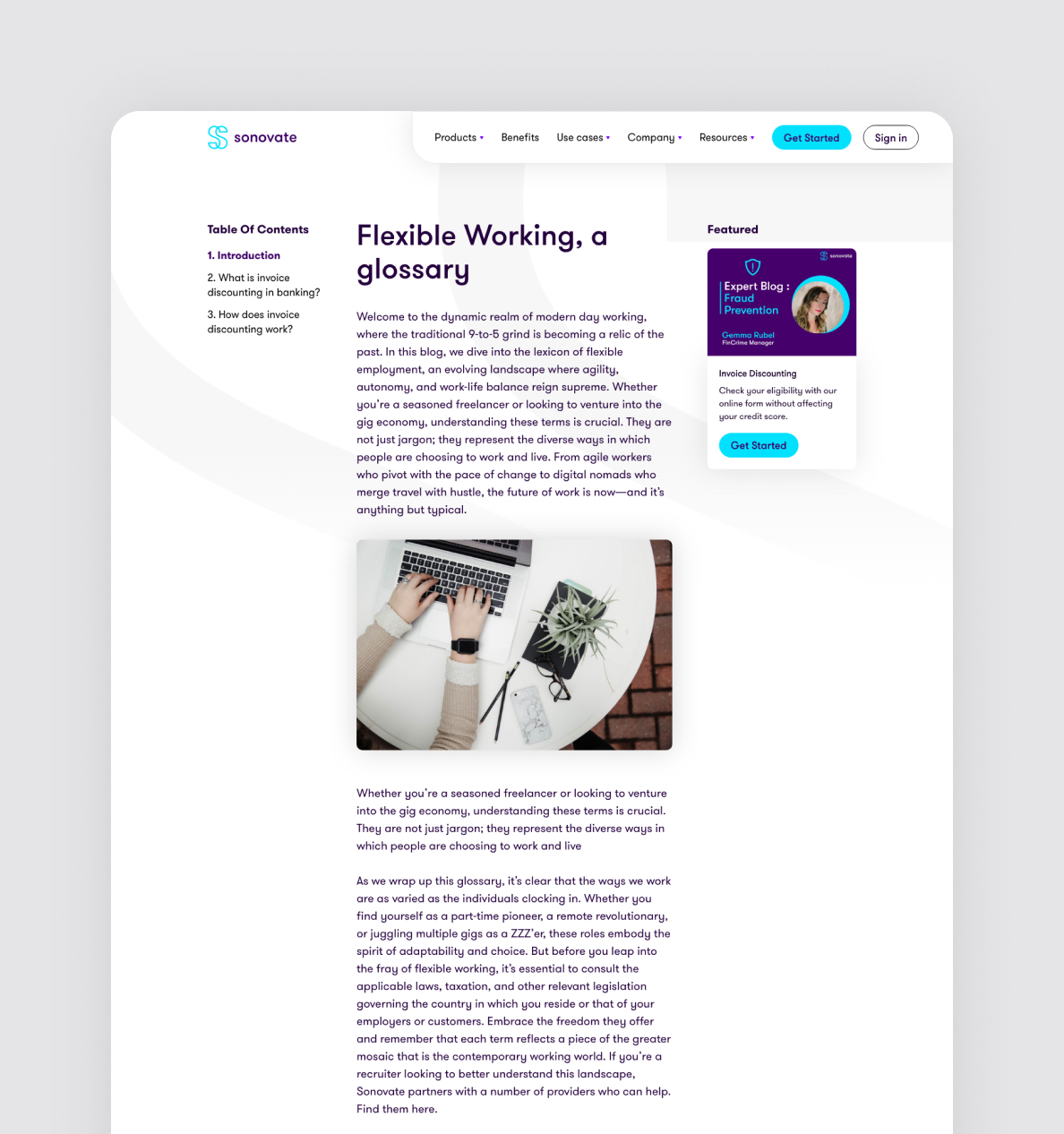 The final result totally transformed how the Sonovate team utilized their website. It allowed them to react quickly to their ever-changing marketing needs as well as helped customers quickly navigate the world of business finance.
