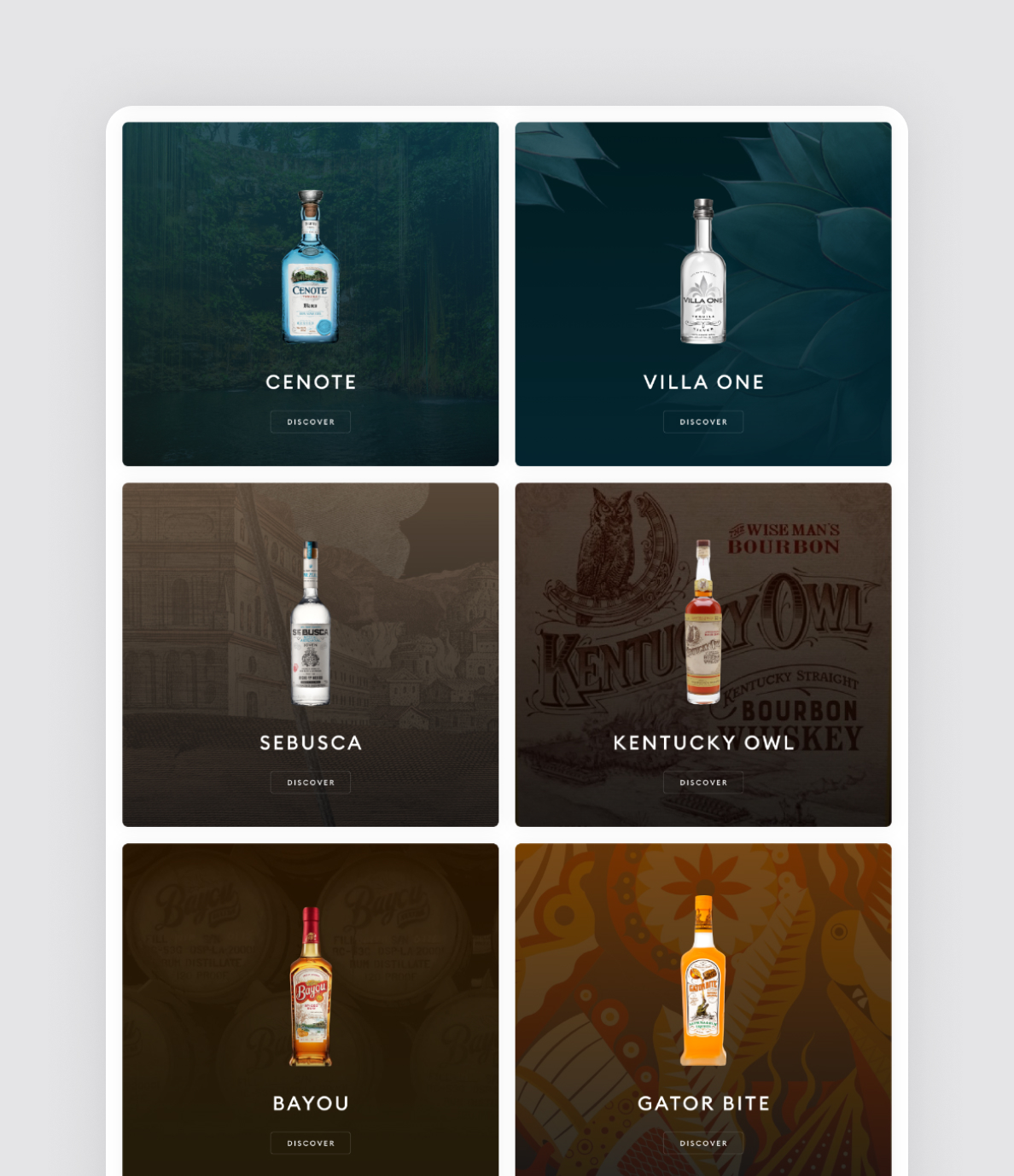 To showcase the refreshed brand icon, we created a bold 3D-animated visual emerging from a block of liquid marble. It resembles the materials used in high-end bars, right where the Group’s premium alcoholic drinks are served. We used this as a key visual on the homepage, to grab users’ attention the moment they land on the site.