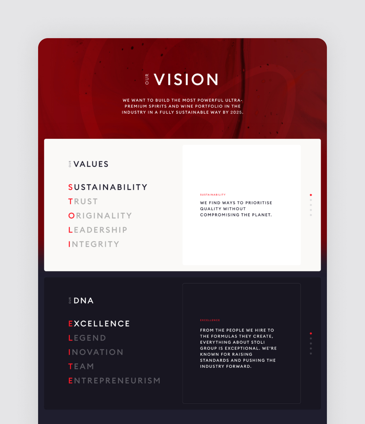 We partnered with the NY-based Stoli Group to elevate their online presence and brand, as well as to refine their positioning in the premium alcoholic beverage market
